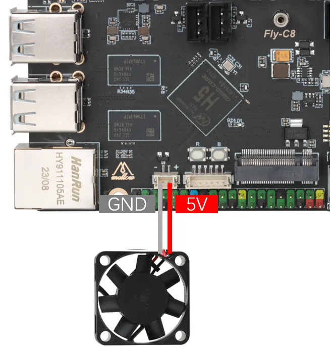 Плата C8 имеет управляемый 5-вольтовой разъем для охлаждения основного контроллера. Способ подключения показан на рисунке ниже.