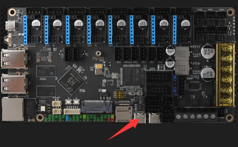 - Подключите верхний компьютер FLY к компьютеру с помощью кабеля