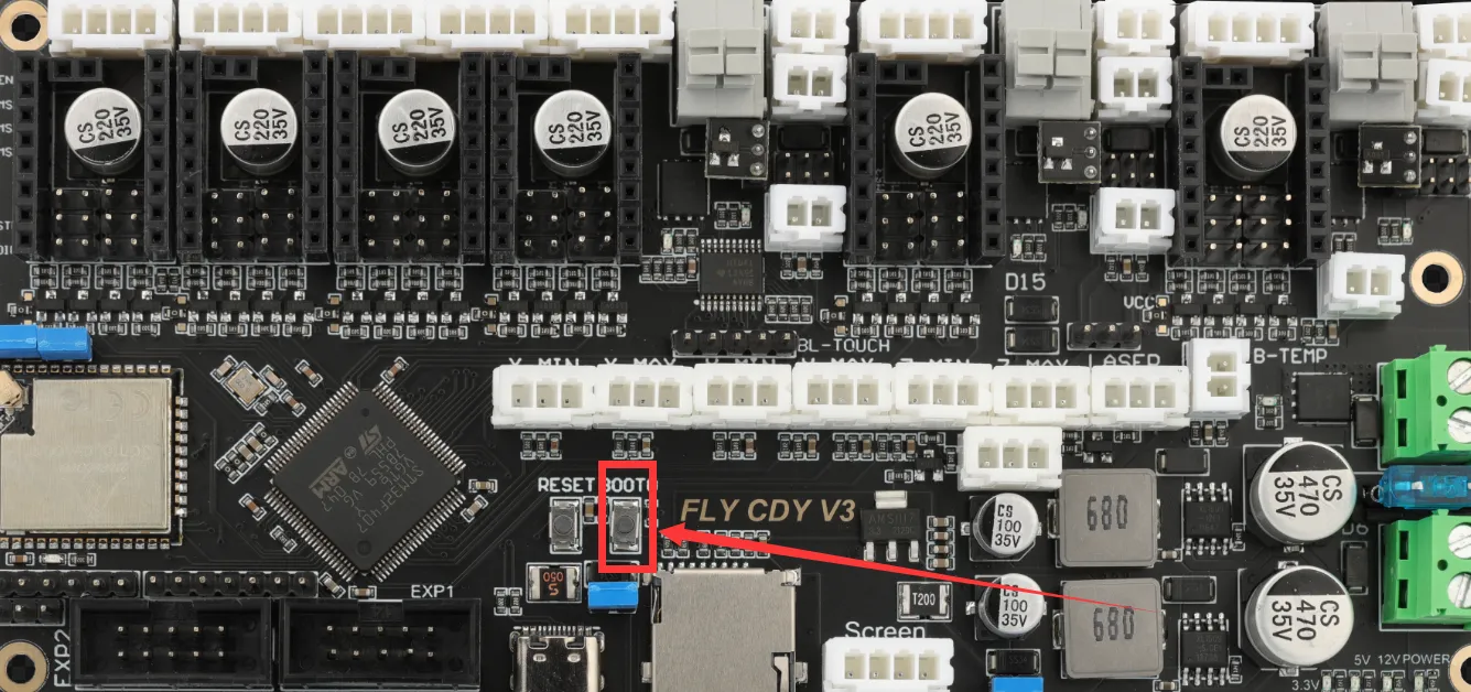 • Первый способ: полностью отключите питание платы, нажмите и удерживайте кнопку BOOT, затем подключите кабель TYPE-C (с поддержкой передачи данных) одним концом к основной плате, а другим — к вашему устройству