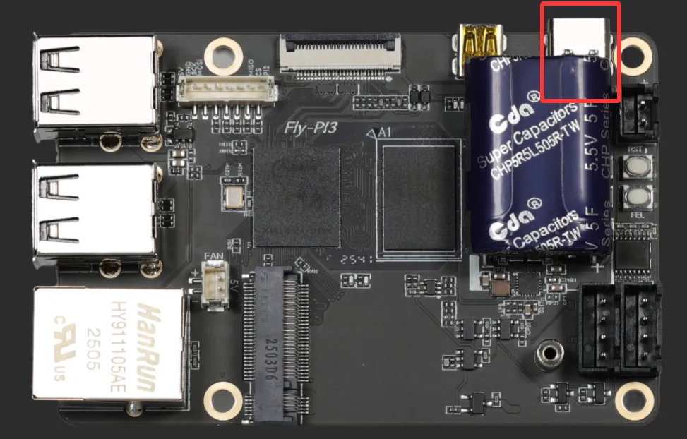 - Подключите управляющий компьютер FLY к компьютеру с помощью кабеля USB Type-C.