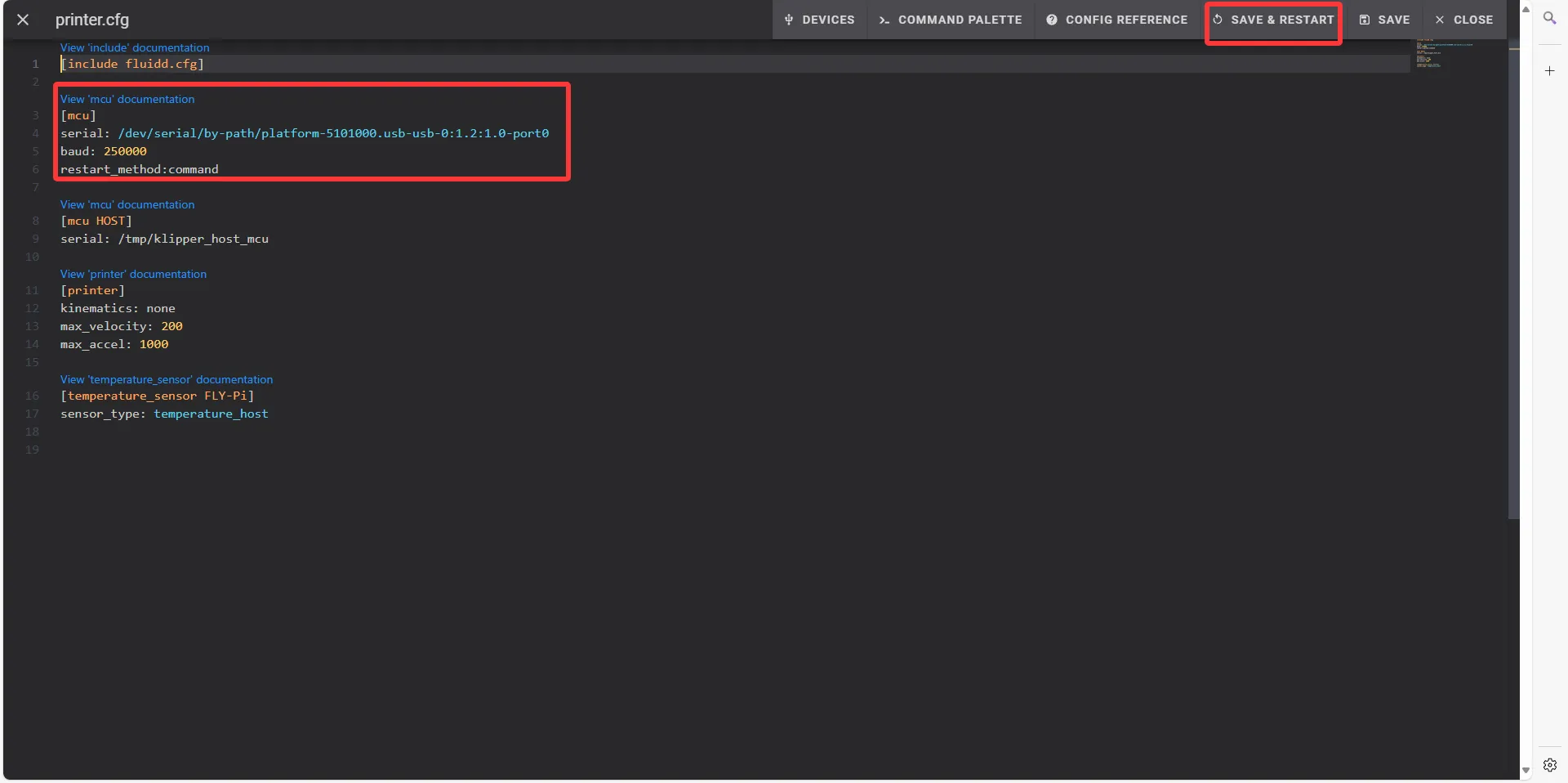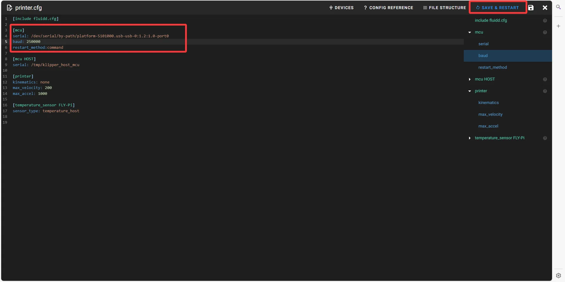 • Для fluidd: {…} , войдите внутрь, чтобы найти файл printer.cfg