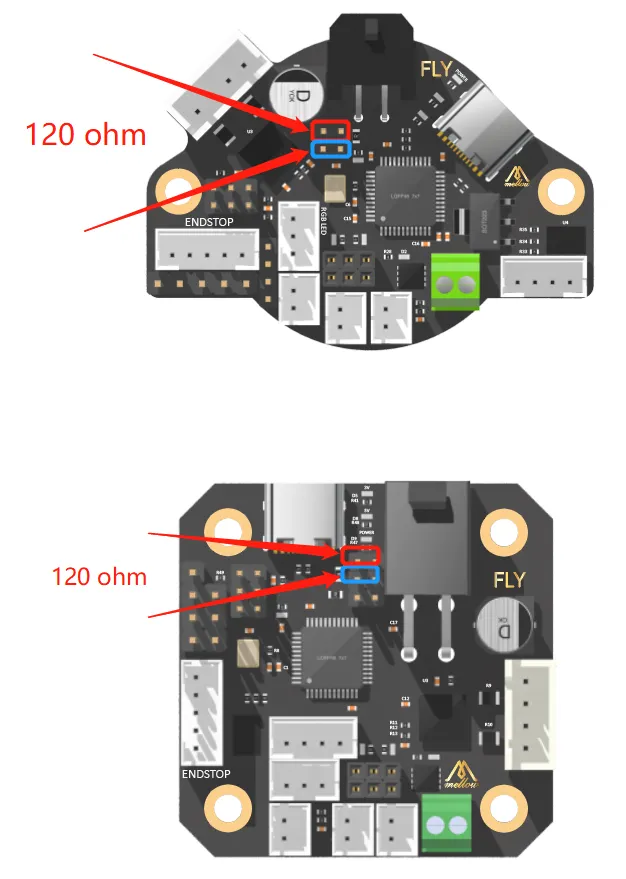 60Ωпри измерении мультиметром при отключенном питании. Если оно составляет120Ω, необходимо установить перемычку120Ω. Если сопротивление составляет около40Ω, перемычку следует удалить.